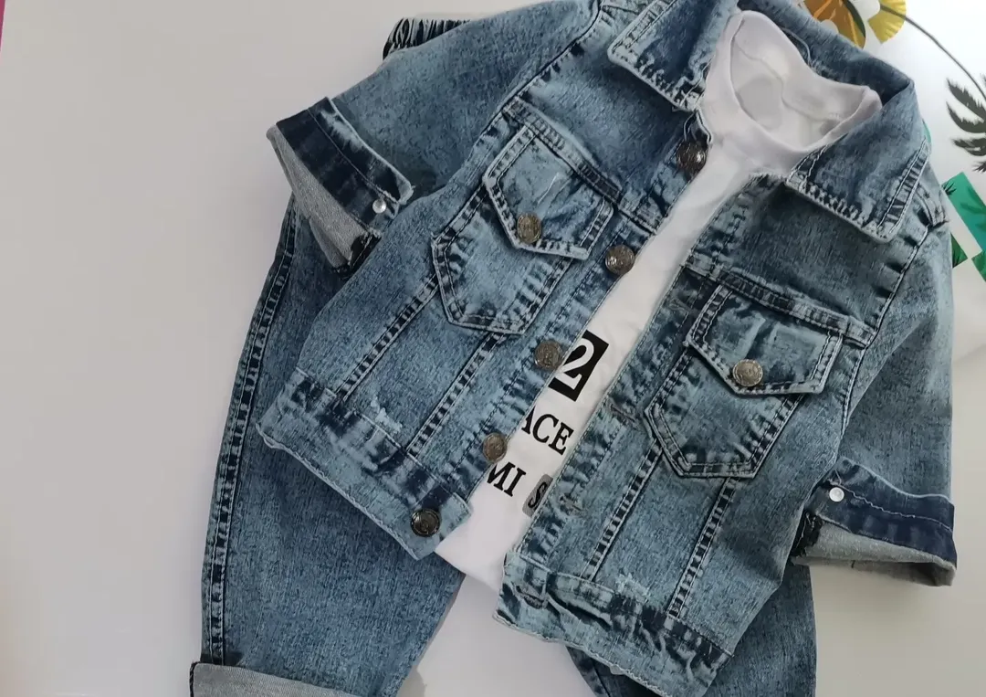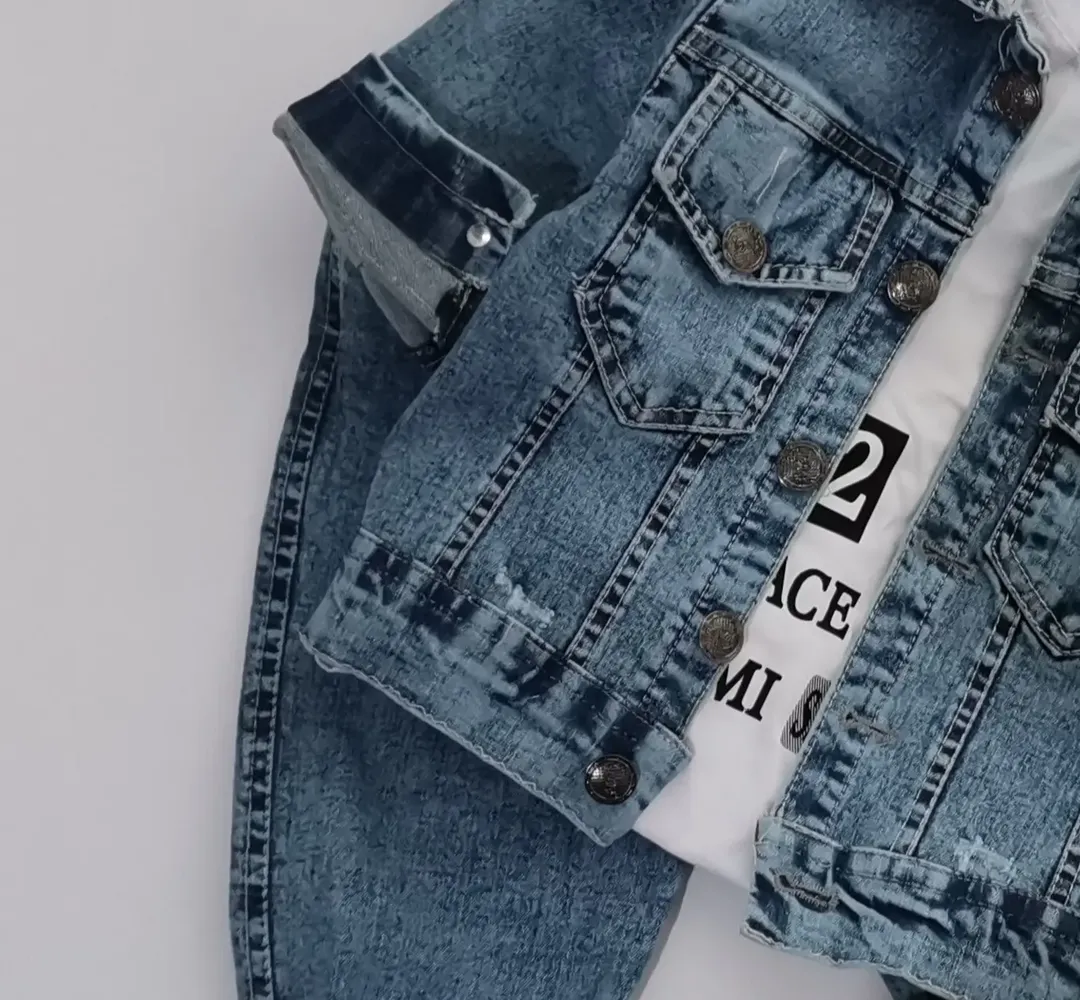 ست کامل ۳تیکه کت وشلوار لی همراه تیشرت